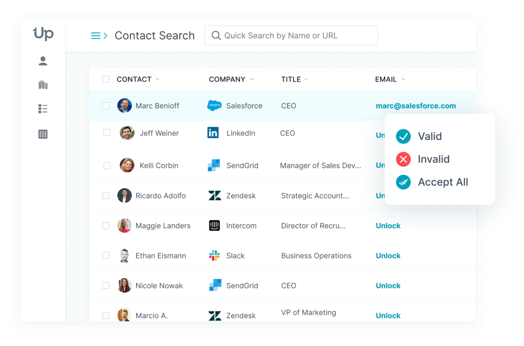 Whether you want to buy business email lists or create targeted marketing campaigns, UpLead’s real time prospecting and advanced search capabilities makes it the go to platform.