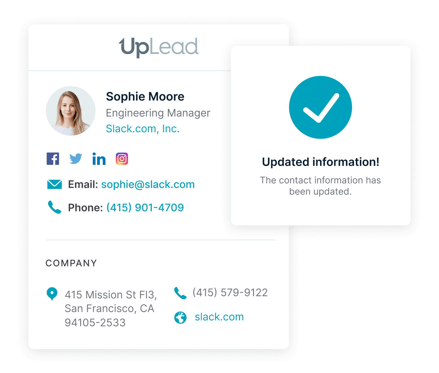 Ensure your contacts and accounts are always up-to-date by enriching them with fresh data from UpLead’s dynamic database. You can instantly refresh records or schedule updates to replace outdated information or complete missing details.