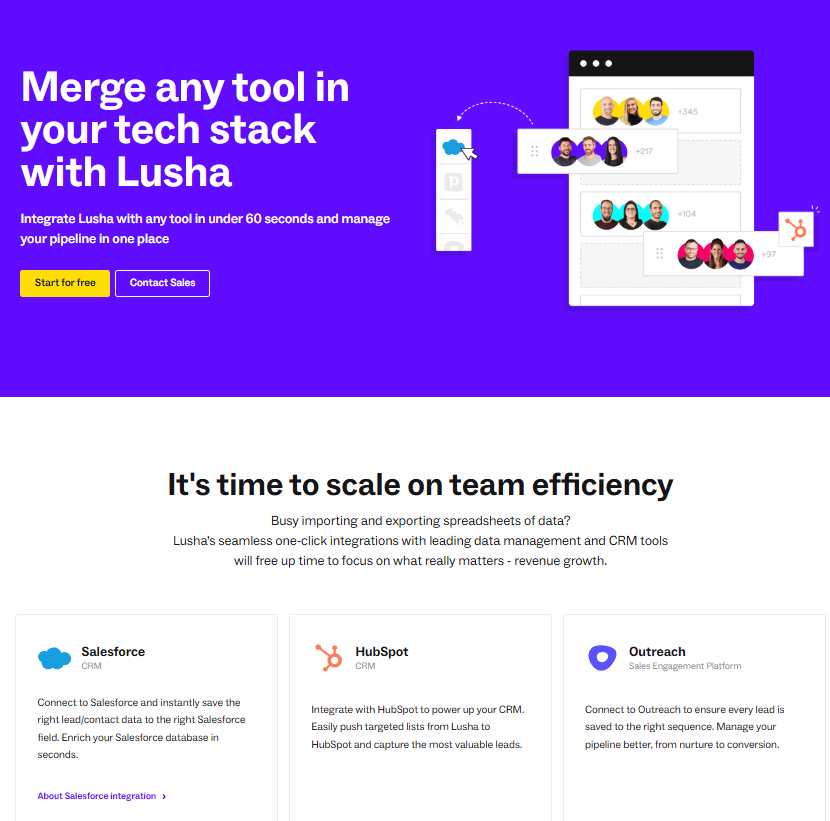 Lusha is a capable web-based software that integrates effortlessly with your company’s technology stack. It works with several technologies, including CRM systems, email marketing platforms, and sales engagement platforms.
