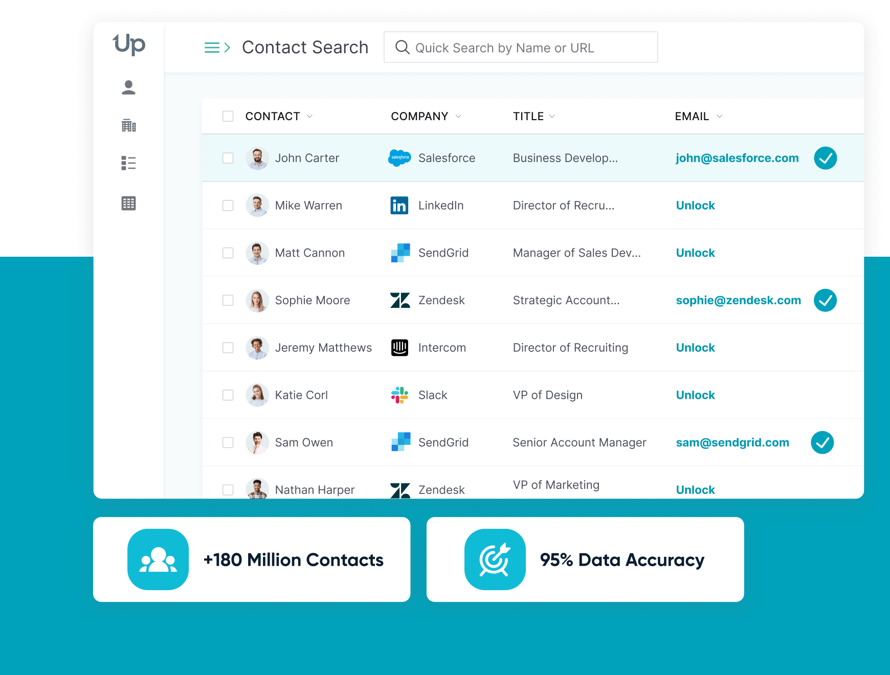 Other tools average 50% accuracy. UpLead guarantees 95% precision, or you get your credits back.